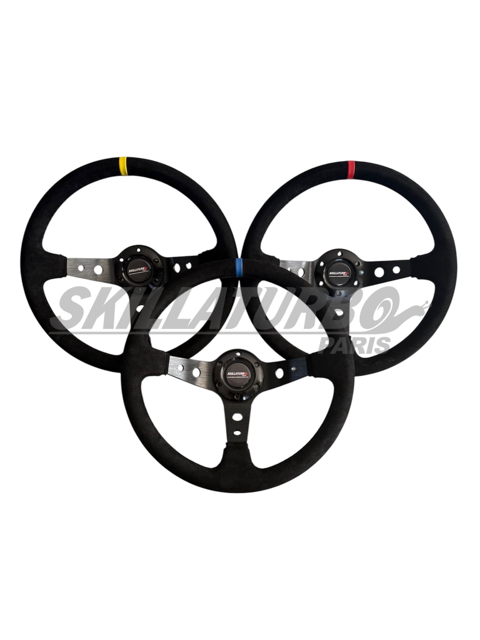 Volante universal em Alcântara vermelho/amarelo/azul.